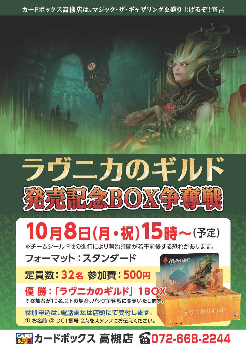 Cardbox高槻店 カードボックス على تويتر 本日の大会予定 Mtg チームシールド戦 11時 Mtg ラヴニカのギルド Box争奪戦 15時 神バディファイター決定戦 日本一への道2018 1st Stage 15時 Mtg レガシー 19時30分 皆様のご参加お待ちしております